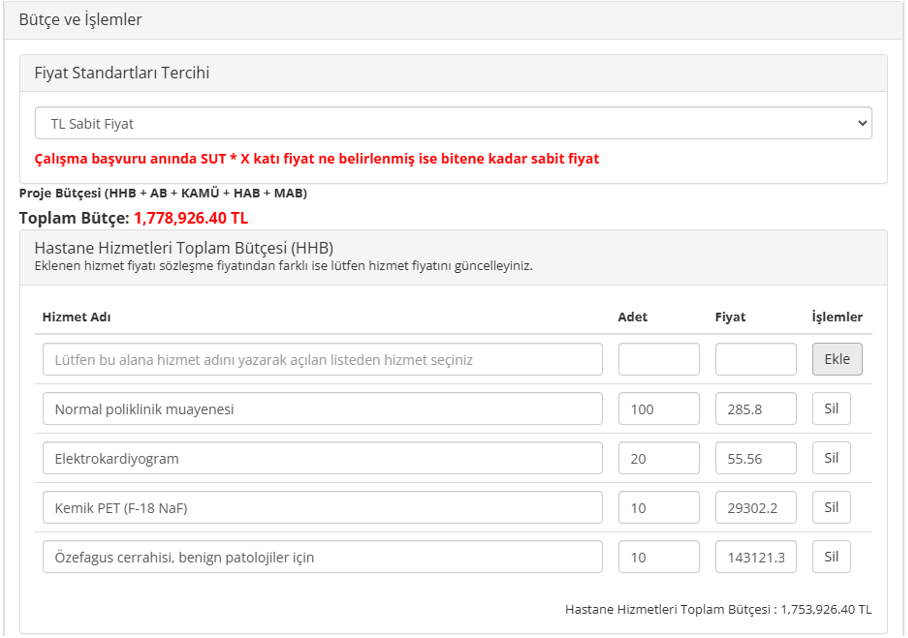Hastane Hizmetleri Toplam Bütçesi (HHB) sistemden otomatik olarak girilerek